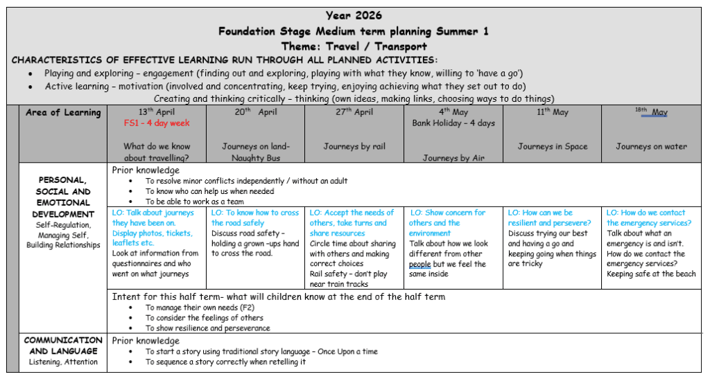 We plan and work closely with staff in Foundation Stage 1 (Nursery).
